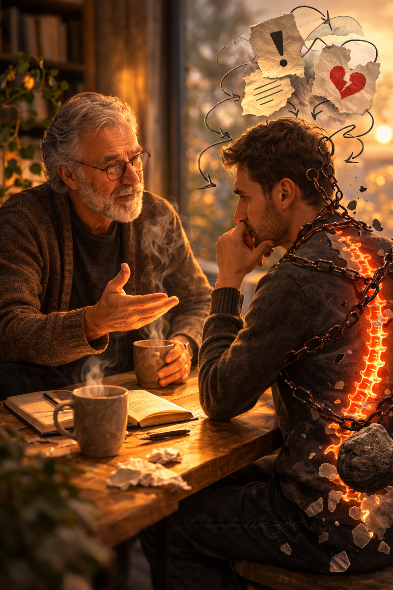 27.03.2026 #Метафоричешная Иногда человеку достаточно услышать одно слово — и внутри запускается целая цепочка: «Он меня не уважает… меня обесценили… со мной что-то не так». Снаружи ничего особенного не произошло. Но внутри психика уже построила историю. И если эта история бьёт по чувству собственной ценности, тело может начать реагировать: падает энергия, появляется слабость, иногда даже начинают болеть мышцы или спина. Так иногда из маленькой интерпретации вырастает настоящая психосоматическая реакция. Однажды Тим заговорил об этом с Лукой. Они сидели в аудитории после лекции. Люди уже разошлись, на столе осталась только кружка остывшего чая. — Лука, можно странный вопрос? — сказал Тим. — Странные вопросы — моя специализация, — улыбнулся Лука. — Сегодня на лекции ты сказал слово «хрень». Просто так, в разговоре. А один человек потом сказал, что это неуважительно. Лука тихо засмеялся. — О, это классика. — Но ты же просто говорил. — Да. Но для психики это уже не так важно. — Представь