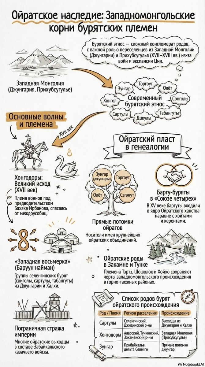 Ойратское наследие: Западномонгольские корни Переселенцы из Западной Монголии (Джунгарии) и Прихубсугулья сыграли важнейшую роль в