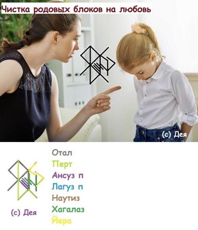 Чистка родовых блоков на любовь и семью. Автор - Дея. 📌Руны в ставе: ✨Одал — Перт — это ваш родовой канал. Руны показывают всё, что перешло к вам по наследству от родителей и предков в сфере личной жизни. ✨Ансуз (перевёрнутая) — это негативные убеждения, ментальные блоки и внутренние ограничения, которые мешают строить отношения. ✨Лагуз (перевёрнутая) — символизирует невозможность полюбить и создать семью, одиночество и закрытость для чувств. ✨Наутиз — действует принудительно, заставляет эти программы разрушаться. ✨Хагалаз — буквально рушит эти блоки вдребезги. ✨Йера — обеспечивает постоянную, непрерывную работу става. 📌Оговор (пример): «Силой этих рун я разрушаю и убираю из себя все негативные установки об отношениях, которые достались мне от рода и родителей. Став уничтожает в моём подсознании любые вредные программы, мешающие мне любить и создавать семью. Он работает постоянно и без остановки до тех пор, пока все родовые блоки на канале отношений не будут полностью удалены». Далее