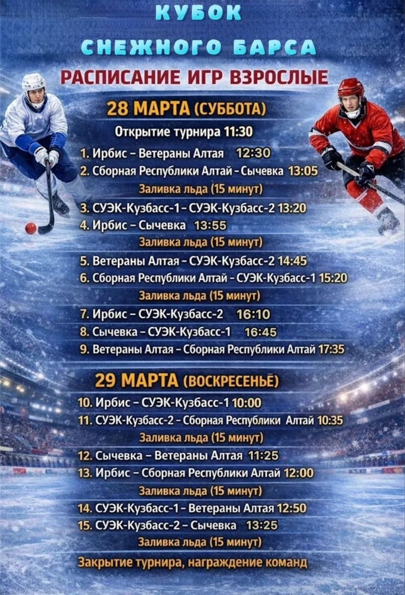 28-29 марта в спортивной школе "Атлант" пройдут соревнования по хоккею с мячом среди взрослых "Кубок Снежного Барса".