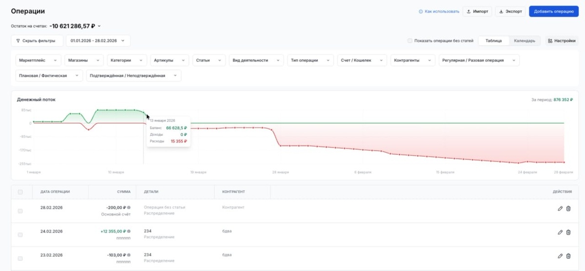 Друзья, принесли вам крутые обновления, чтобы управлять финансами и анализировать показатели было еще удобнее! 1️⃣ В разделе Финансы - Операции теперь доступен “Платежный календарь” 🔥 Это инструмент финансового планирования, который помогает заранее видеть текущие и будущие поступления и расходы, оценивать риски кассовых разрывов и вовремя на них реагировать. 👉 Как это работает: Все поступления и списания вносим через раздел “Операции” К поступлениям относятся: выплаты от МП (фактически поступившие и планируемые), поступления от вкладов юрлиц и любые зачисления на ваш расчетный счет. В расходы вносим все текущие опер расходы, а также регулярные и планируемые расходы. 👉 Платежный календарь будет учитывать все данные и наглядно показывать динамику и текущее состояние счетов. Доступны 2 режима отображения — график или календарь: график денежного потока — отображает баланс с учетом предстоящих платежей в виде графика календарь – делает то же самое, но по дням в календаре. Ка