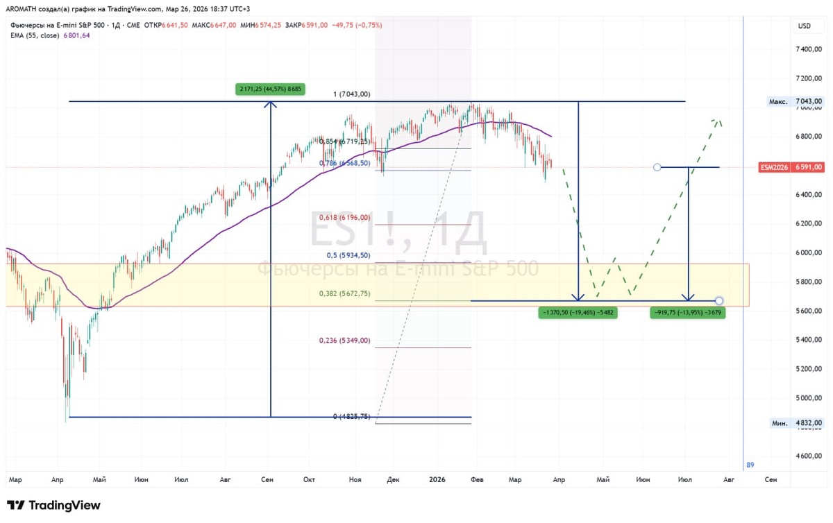 Жду дружно американский рынок SP500 вниз еще процентов -14% наверное до уровней 5750+-100