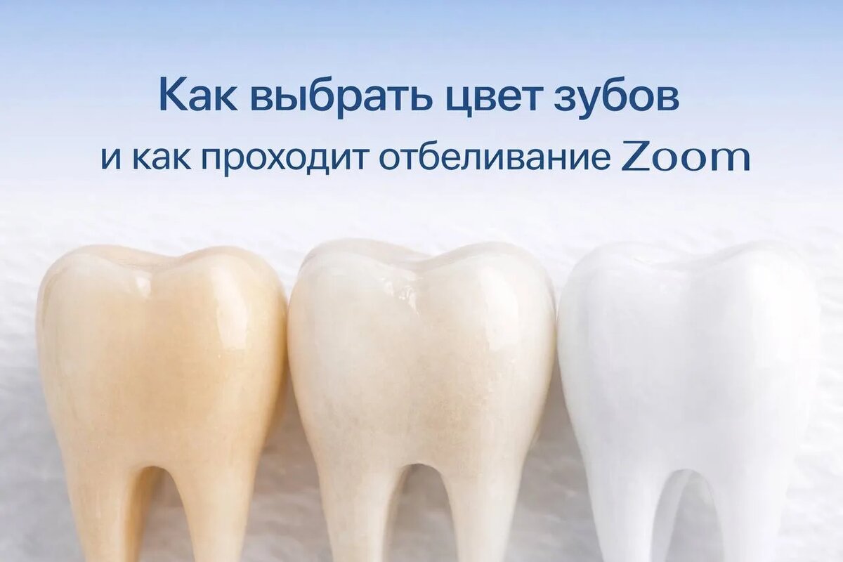 Как выбрать цвет зубов перед отбеливанием Zoom, и как вообще проходит процедура: Один из самых частых вопросов перед отбеливанием: «Какой оттенок мне выбрать, чтобы не было слишком?» При профессиональном отбеливании пациент не заказывает конкретный цвет. Отбеливание Zoom работает иначе: мы бережно осветляем ваш собственный природный оттенок эмали настолько, насколько это возможно и безопасно в вашем случае. Как тогда понять, какой результат будет красивым? Самый удачный цвет зубов не просто самый белый, а тот, который выглядит гармонично именно на вашем лице. Мы всегда ориентируемся на несколько моментов: — природный оттенок вашей эмали; — тон кожи, губ и белков глаз; — возраст и общую эстетику лица; — ваши пожелания: более естественный результат или более яркая белизна. Очень белые зубы не всегда выглядят дорого. Иногда самый красивый эффект — не «максимально бело», а свежо, чисто, ухоженно и естественно. Как проходит отбеливание Zoom: Процедура начинается с консультации: врач оценива