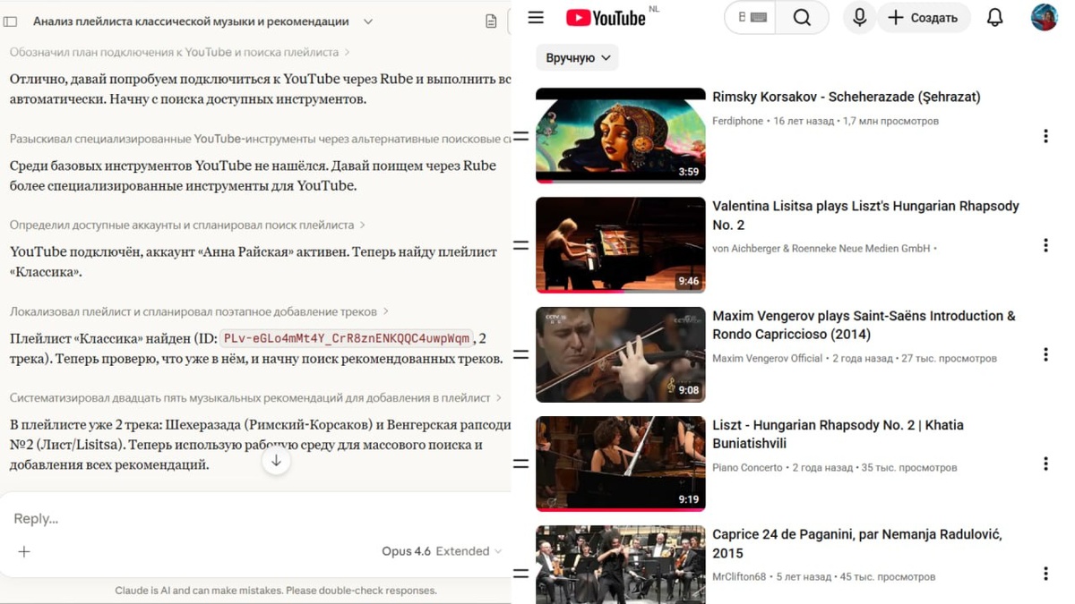 Сегодня пятница, а это значит, что? Правильно, что самое время подумать о высоком, о культурном и чем-то услаждающем душу. Речь идет не только о моих великолепных вебинарах для клубчан, которые, напоминаю, проходят вечером в пятницу, но и о классической музыке! О классике я уже писала много раз, и самый подробный раз, наверное, тут. Но, как вы понимаете, слушать одно и то же, пусть и гениальное, невозможно. А рекомендации из iTunes, конечно, оставляют желать лучшего (надеюсь, когда они объединятся с Gemini, качество их советов будет повыше). Поэтому я решила обновить свой плейлист, а за советом, разумеется, отправилась к своему любимому Opus 4.6 Скинула ему скриншоты моего текущего плейлиста, он внимательно проанализировал композиции и подобрал похожее под мой характер и вкус. Скопировать промпт можно тут. Но самое главное, как вы понимаете, далеко не это. В конце концов, плюс-минус такую подборку (но не такую 😏) может подобрать и какой-нибудь Spotify. Самое главное то, что да