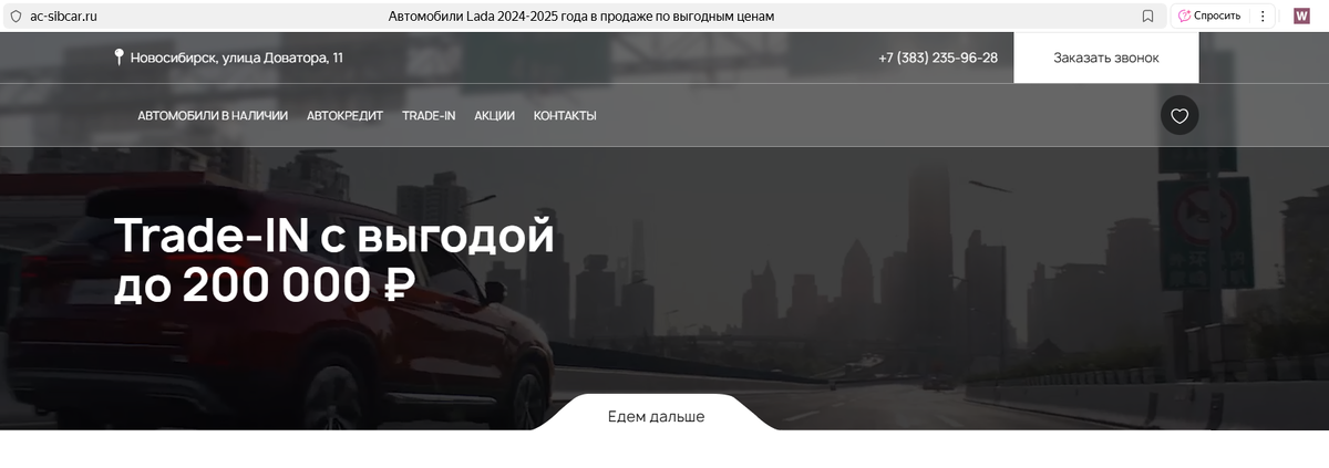 СибКар — это автосалон в Новосибирске. Занимается продажей новых автомобилей. В работе дилера обнаружены подозрительные моменты. Больше интересного — в нашем обзоре. В автосалоне на Доватора 11 в Новосибирске можно купить новый автомобиль. В онлайн-каталоге представлено более 20 марок. Дилер заявляет, что в ассортименте есть китайские, отечественные, корейские, японские и европейские бренды. Однако нет верифицированных сведений о том, какие именно авто есть в наличии в выставочном зале. Отметим, что в каталог включены даже те модели, которые сняты с производства в 2022 году. Причем, они стоят с пометкой «без пробега». Все это показалось нам подозрительным, поэтому мы решили проверить салон. Владельцем автоцентра СибКар является ООО «СибКар» (ИНН 5405512542). По крайней мере, так указано в футере сайта. Однако в карточке компании указано, что она занимается техническим обслуживанием и ремонтом ТС. Там же есть официальный сайт — sibcar54.ru. На основании этого мы делаем вывод, что с