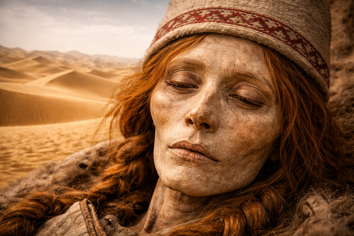 Ван Бингхуа назвал её про себя «Красавицей». Официальное название — мумия из Лоулани. Она станет самой известной из более чем двухсот мумий, обнаруженных в Таримской впадине за следующие десятилетия. И каждая из них будет задавать один и тот же вопрос: что делают эти люди здесь, в самом сердце Центральной Азии, в трёх тысячах километров от ближайшего европейского побережья?