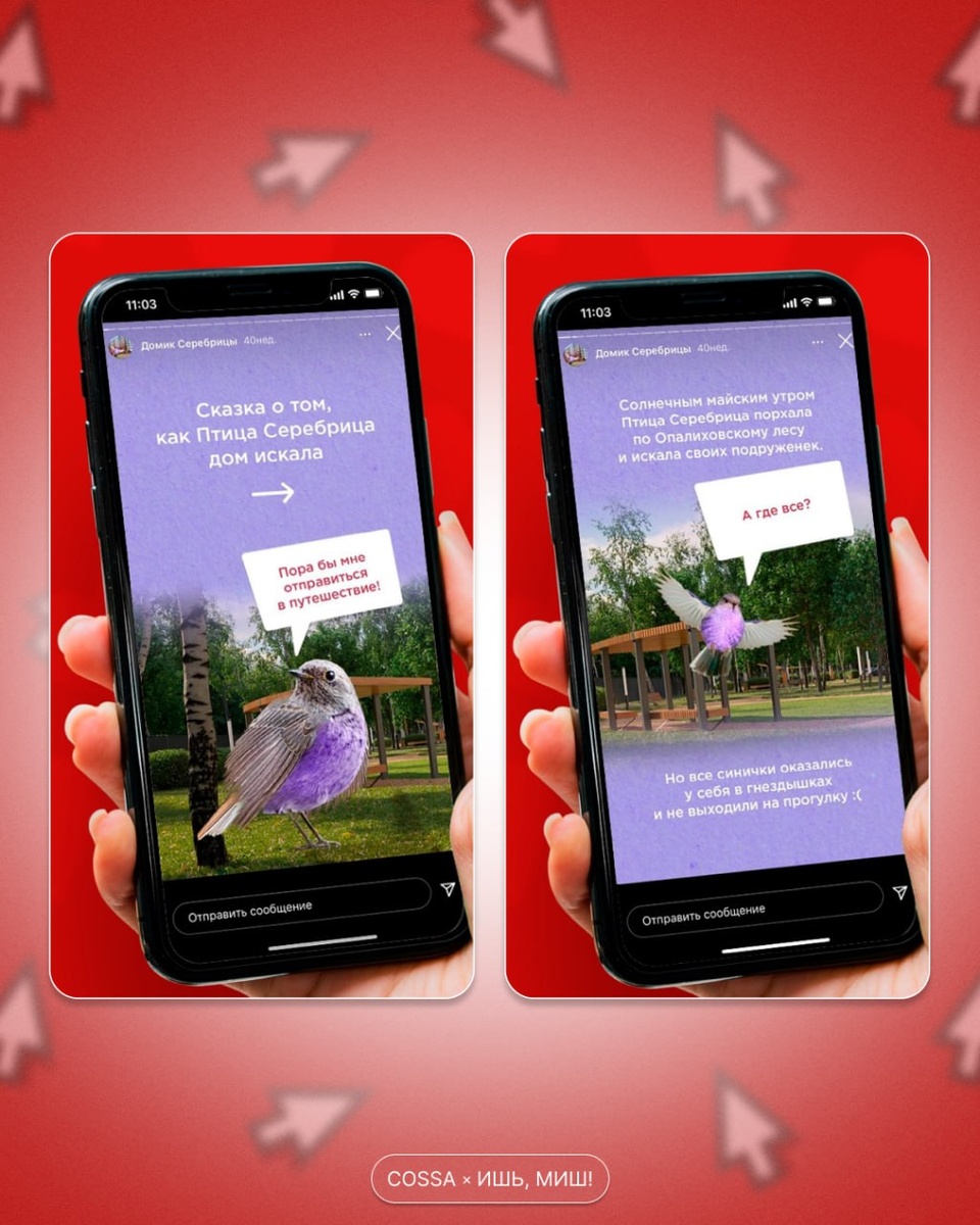 Те самые ребята из Ишь, Миш! 😍 показывают силу контента на практике. Рубрика для клиентов, контент-маркетологов, сммщиков, копирайтеров и редакторов. Бизнес-задача. Сделать коммуникацию более вовлекающей и запоминающейся, используя сторителлинг, который мотивирует подписчиков участвовать в развитии событий. Контент-решение. Создали интерактивную серию Stories с маскотом проекта — птицей Серебрицей. Подписчики решали, с кем птица пойдет на свидание, что наденет и как завершится встреча. Формат «управляй мной» позволил перенести блогерскую механику в контент застройщика и вовлечь аудиторию через голосования и выбор сценария. Серия развивалась поэтапно: в первой части птица выбирала свой дом в миниполисе Серебрица, а продолжение истории зависело от откликов аудитории. Пользователи активно участвовали и проявляли интерес даже спустя несколько месяцев, интересуясь дальнейшей судьбой персонажей. Результаты. — подписчики активно участвовали в голосованиях и следили за развитием сюжета; —