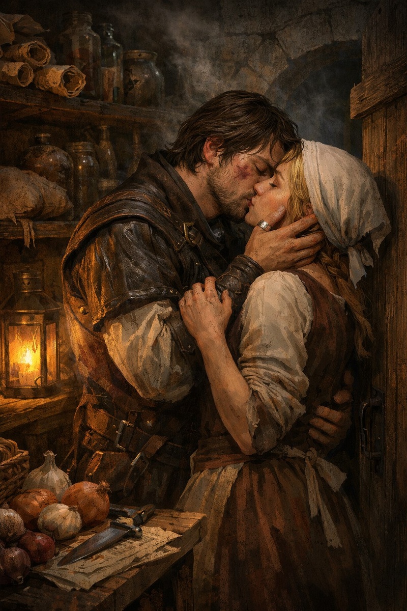 Через пятнадцать минут Джулиан уже был в замке. Кляча, загнанная до предела, хрипела и дрожала, когда он спрыгнул с неё у конюшни, даже не потрудившись как следует привязать. Он знал, что хочет сделать. Знал точно. Первым делом — к Ингрид. Кухня гудела: поварята носились с горшками, помощницы крошили овощи, в очагах ревел огонь. Сквозь эту суету Джулиан пробивался, как лосось против течения, пока наконец не увидел её. Ингрид стояла у плиты, размешивая что-то в огромном котле, и вид у неё был такой, будто она вот-вот упадёт. Под глазами залегли тени, фартук покрывали свежие пятна, волосы выбились из-под платка. Увидев Джулиана, она нахмурилась, открыла рот, чтобы рявкнуть что-то привычное, но он схватил её за руку и потянул в кладовку. — Джулиан, ты чего... — начала было она, но он зажал ей рот ладонью. — Тихо. Вопрос жизни и смерти. Джулиан прикрыл дверь, оглянулся — никого. Тогда он вытащил из-за пазухи письмо, развернул и показал Ингрид. — Сегодня вечером, — зашептал он, сам н