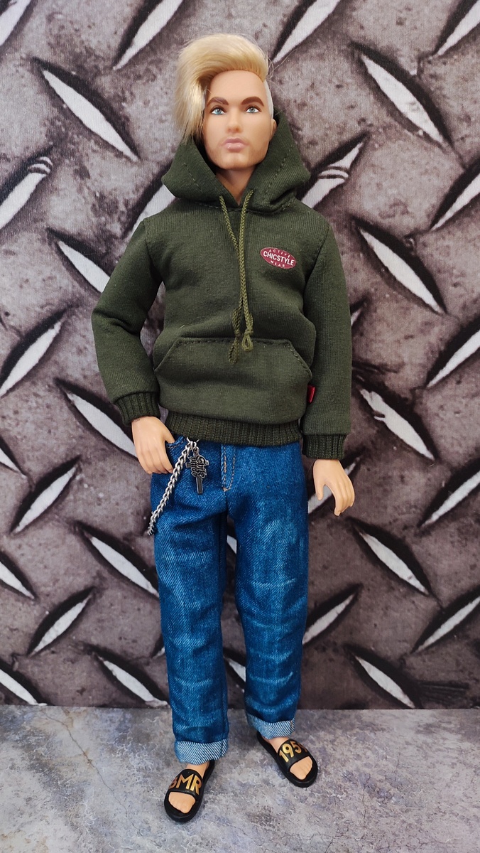Декстер получил новые весьма реалистичные джинсы с цепочкой и худи с логотипом. Что в этом худи мне понравилось, так это прорезь в капюшоне, то есть можно одеть его например индейцу или любому другому длинноволосому Кенушке и волосы будут лежать окей, а не