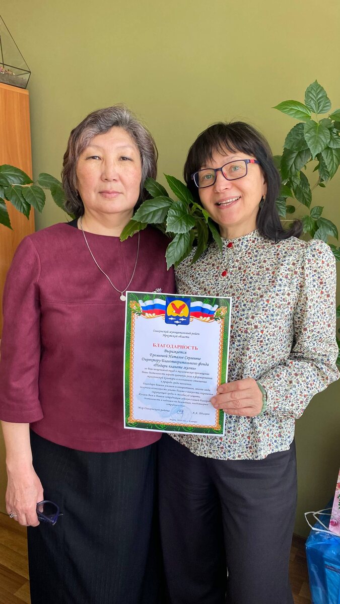 ! К нам в гости приехала Марина Андреевна Пестонова, начальник отдела охраны окружающей среды администрации Ольхонского района. Мы бесконечно рады и тронуты! Марина Андреевна вручила нам благодарность за неоценимый вклад в экологическое просвещение. Такое признание от района, для которого сохранение природы Байкала в приоритете, дорогого стоит! Спасибо за высокую оценку нашего труда! Но встреча была посвящена и будущему. Мы обсудили детали нашего нового масштабного проекта "Три души Ольхона". Это большая история о восстановлении священного мыса Бурхан, о возвращении к жизни аутентичных растений, о создании условий для безопасного и осознанного туризма. Впереди много работы. И поддержка администрации Ольхонского района для нас - важнейший фундамент. Начинаем активную работу!💪👏 Следите за нашими новостями также в ВК, в Маx, впереди много интересного. 🖍 Проект реализуется при поддержке Президентского фонда природы 🟢 Организатор проекта Благотворительный фонд «Подари планете жиз
