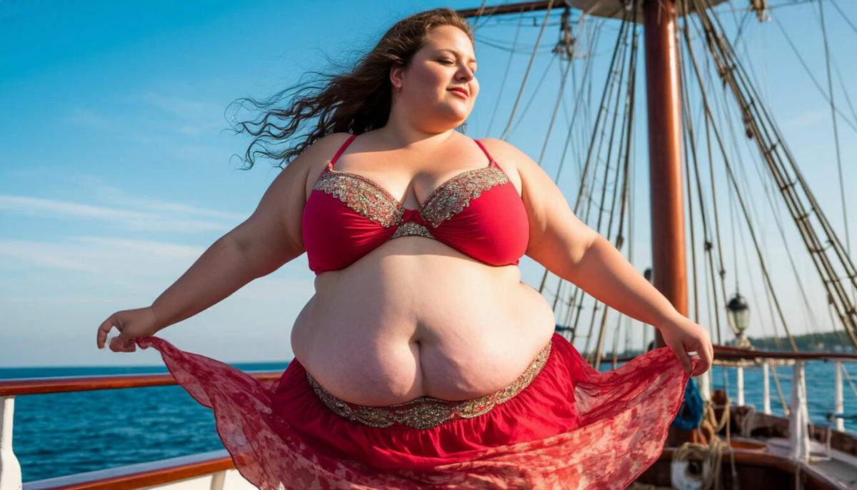 Следующее видео было уже с палубы теплохода: закат, дельфины, выпрыгивающие из воды под одобрительные крики толпы, и вдруг камера резко переводится на женщину, стоящую чуть поодаль у поручней. Женщина в ярком сарафане, с очень пышными формами. Она танцует, двигает бёдрами под музыку, которая гремит с динамиков, а Андрей язвительно комментирует: