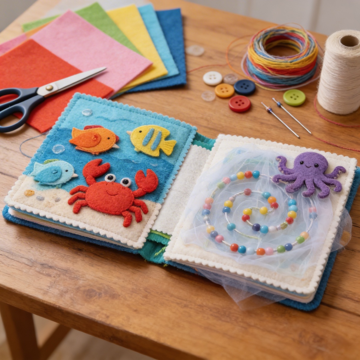 Фетр — идеальный материал для создания развивающих книг своими руками. Он мягкий, не осыпается, не требует обработки краёв и представлен в огромной цветовой гамме. Книга из фетра станет не просто игрушкой, а настоящим тренажёром для развития мелкой моторики, логики и фантазии малыша. И главное — сшить её под силу даже тем, кто впервые берёт в руки иголку.