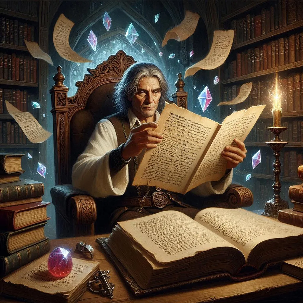 Старина Раум всё так же работал в своей библиотеке, окружённый стопками фолиантов, парящими в воздухе свитками и мерцающими кристаллами данных. Он даже не поднял головы, когда я появился.