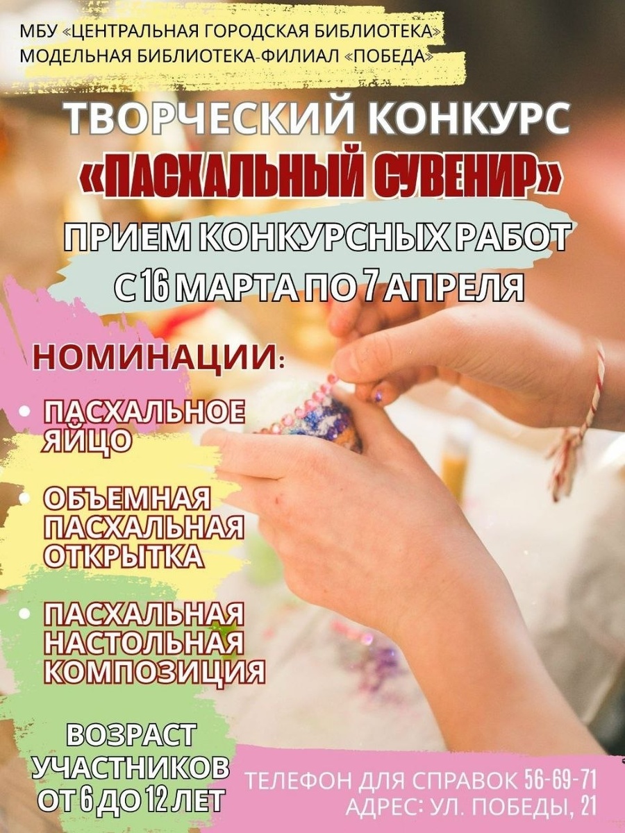 Модельная библиотека-филиал «Победа» приглашает детей от 6 до 12 лет на творческий конкурс «Пасхальный сувенир