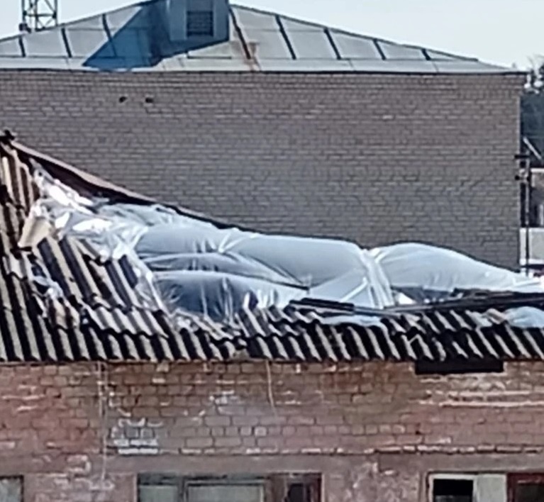 Рухнувшую крышу дома в поселке под Костромой закрыли целлофановой пленкой
