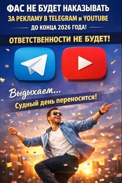 ФАС не будет наказывать за рекламу в Telegram и YouTube до конца 2026 года