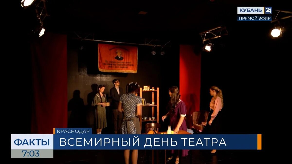 Скриншот видео телеканала «Кубань 24» В честь Всемирного дня театра, который ежегодно отмечается 27 марта, студенты кафедры театрального искусства КГИК показали, из чего складывается их учеба. Будущие актеры и режиссеры с первого курса постигают профессию на сцене: от учебных спектаклей до работы с предметом. «В спектаклях сейчас часто бывает, что, например, нужно принести служанке какой-нибудь графин. Как можно найти какое-нибудь приспособление, чтобы это было интересно. Ритмика, чтобы мы могли слышать, слушать уметь. И работа с партнером — сейчас самое важное в нашей профессии», — сказала студентка 2 курса КГИК Ангелина Федоткина. В арсенале студентов — десятки дисциплин. На сценическом движении они осваивают фехтование, акробатику и пластику. Особое внимание уделяют работе с предметом: палка, стул или веер должны обрести вторую жизнь благодаря воображению и логике. Будущие режиссеры наравне с актерами отрабатывают технику речи, чтобы понимать специфику сцены изнутри. «Работа над реч