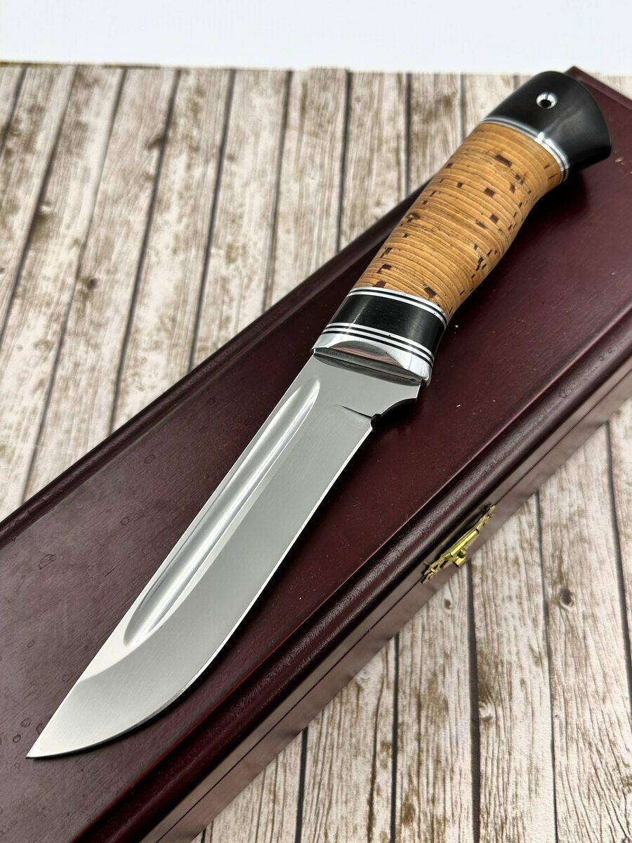 Выполнен из стали VG-10 с долом на клинке с КРИО. Спуски идут от середины клинка, что делает нож бодее прочным при боковых нагрузках. Рукоять выполнена из бересты. Нож режет как бритва. Твердость клинка (HRC): 62 Цена за нож: 10.500 рублей. В комплекте идут ножны из натуральной кожи. Можем сделать формованные ножны +8000 рублей. Для заказа писать на @Nazarklinokbot или по тел +79101343831 WhatsApp/Viber Telegram скоро заблокируют, подпишитесь на наш канал в MAX - подписаться