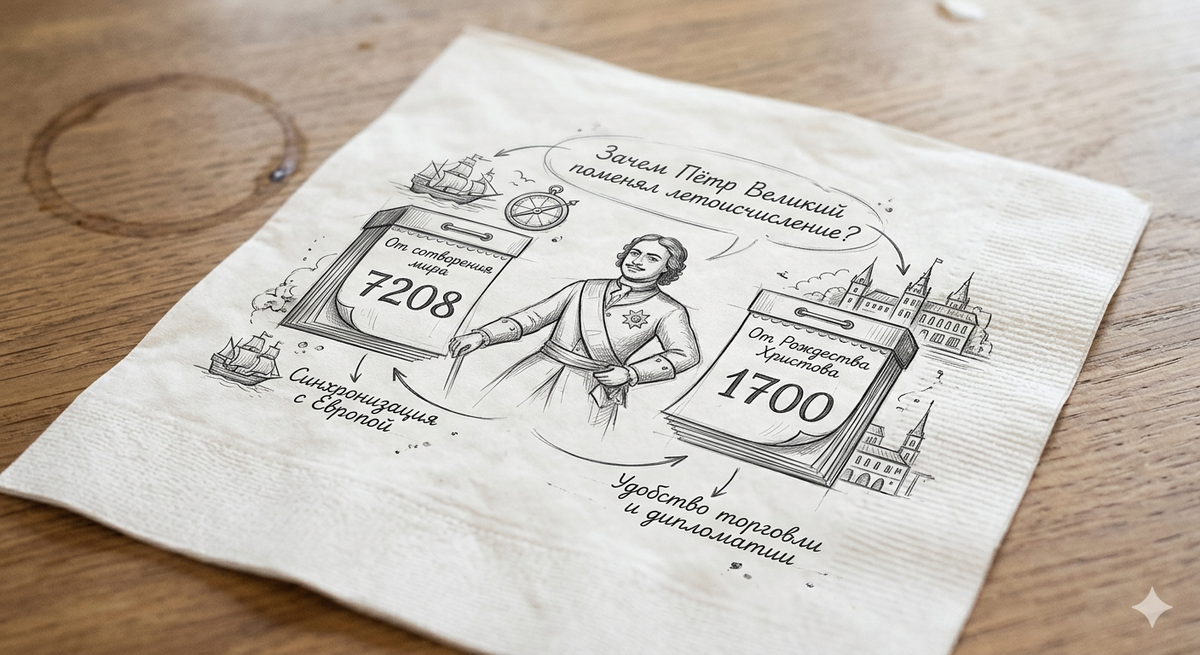 Я помню, как в детстве меня поразила одна простая мысль: а что, если наш календарь - это всего лишь условность? Ведь кто-то же когда-то решил, с какого момента отсчитывать годы. И этим "кем-то" в нашей истории оказался Пётр I, который буквально одним росчерком пера изменил представление русских людей о времени. Представьте: вы просыпаетесь утром, и вам говорят, что сегодня не 7208 год, а всего лишь 1700-й. Примерно так чувствовали себя наши предки 20 декабря того самого "последнего" года. Пётр издал указ, который не просто перенёс празднование Нового года с 1 сентября на 1 января - он буквально отнял у русских людей больше пяти тысяч лет истории. До этого момента на Руси считали годы "от Сотворения Мира" по византийской традиции. Система, надо сказать, была очень логичной - никаких минусовых значений, все события человеческой истории укладывались в единую хронологию. Правда, с точной датой сотворения мира у церковников случались разногласия: кто-то говорил о 5500 годах до Рождества Хри