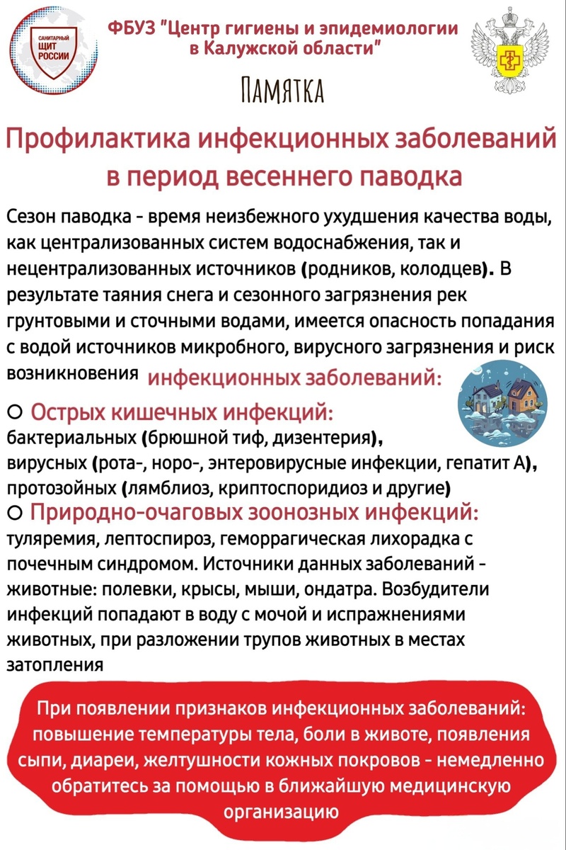 В период весеннего паводка повышается риск возникновения инфекционных заболеваний, связанных с загрязнением воды и окружающей среды