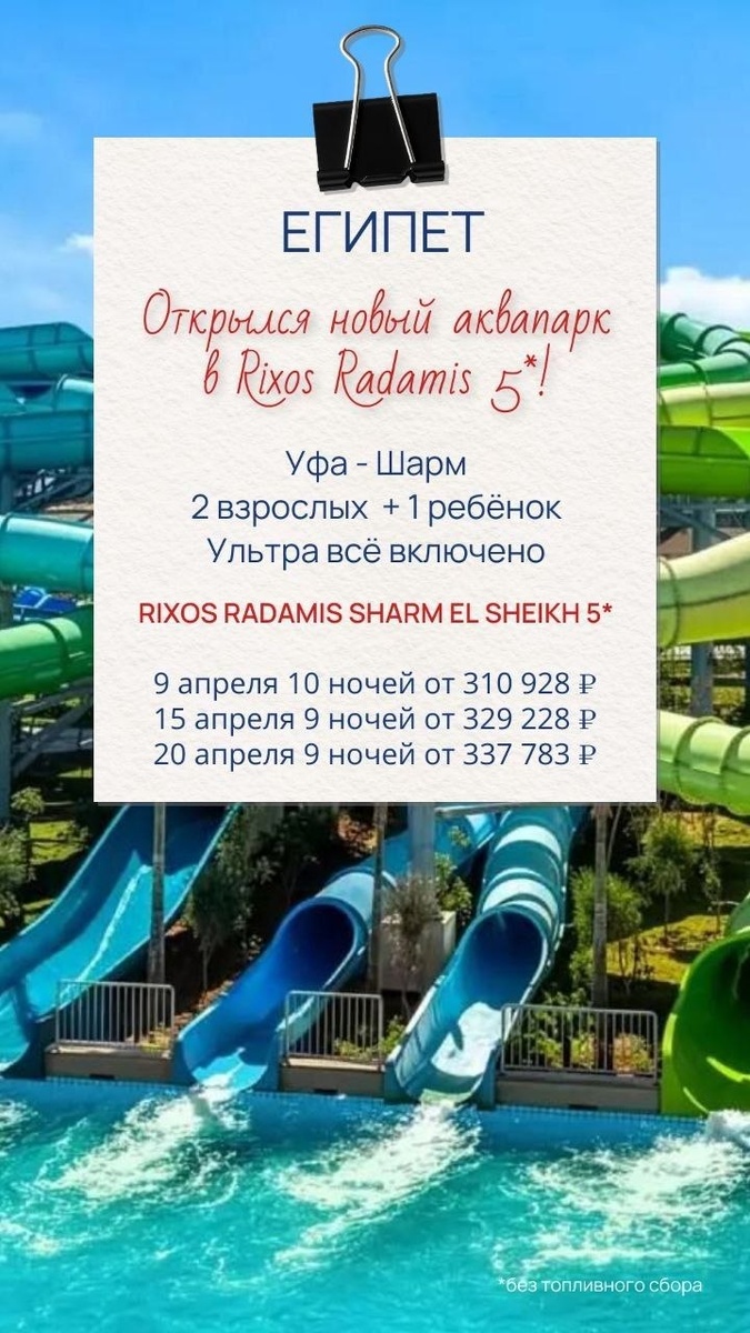 еще одной в течение следующих двух недель), время работы с 10:00 до 17:00; 🔸2 детские зоны с 12 водными горками для детей (ожидается открытие еще двух в течение следующих двух недель) с системой подогрева, время работы с 10:00 до 17:00); 🔸Бары, где подаются безалкогольные напитки по системе «Все включено», время работы с 10:00 до 17:00; 🔸Фуд-корт с открытым буфетом, время работы с 11:00 до 17:00.