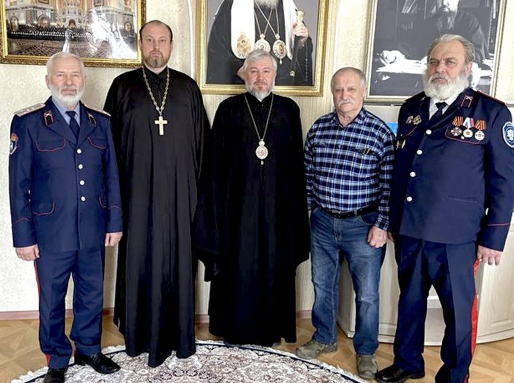 Казаки Новошахтинского казачьего общества вместе с руководителем отдела по взаимодействию с казачеством протоиереем Романом Амплеевым встретились с епископом Шахтинским и Миллеровским Симоном. Владыка Симон утвердил и благословил план совместных мероприятий духовенства с казачьими обществами, образовательными организациями и учреждениями культуры. Казаки ходатайствовали о назначении духовником городского казачьего общества Новошахтинска и Черкасского округа протоиерея Романа Амплеева. Среди предложенных инициатив — проведение в Новошахтинске мероприятий по пожарно-прикладному многоборью, приуроченных ко Дню пожарной охраны России.