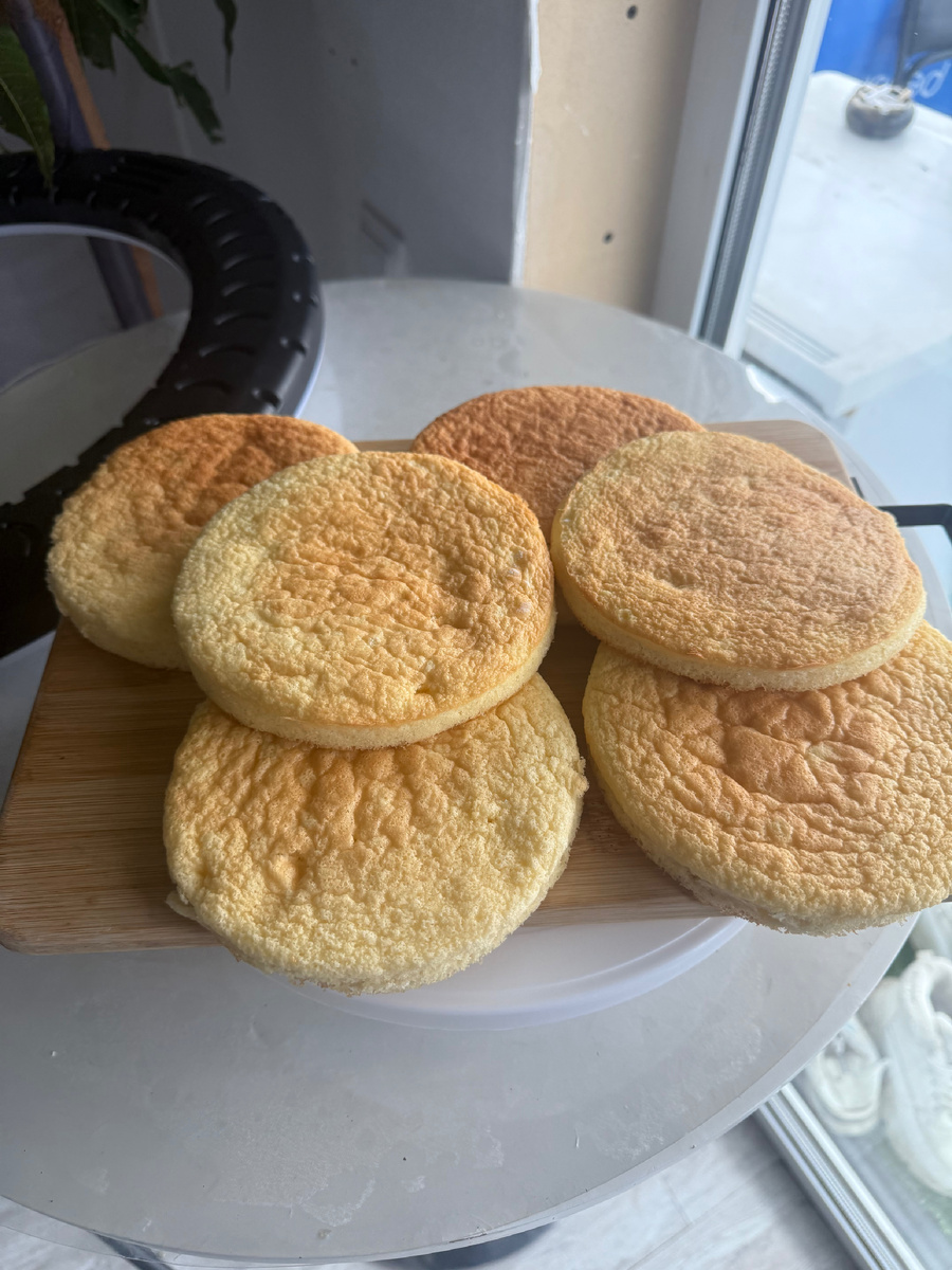 Остужение. Не вынимайте бисквит сразу!Оставьте его в выключенной духовке с приоткрытой дверцей на 10 минут. Затем аккуратно достаньте и остудите на решётке. Для ровного среза дайте «отдохнуть» 6–8 часов,завернув в плёнку. Но я так обычно не делаю. Как остынет, сразу режу и начинаю начинять.