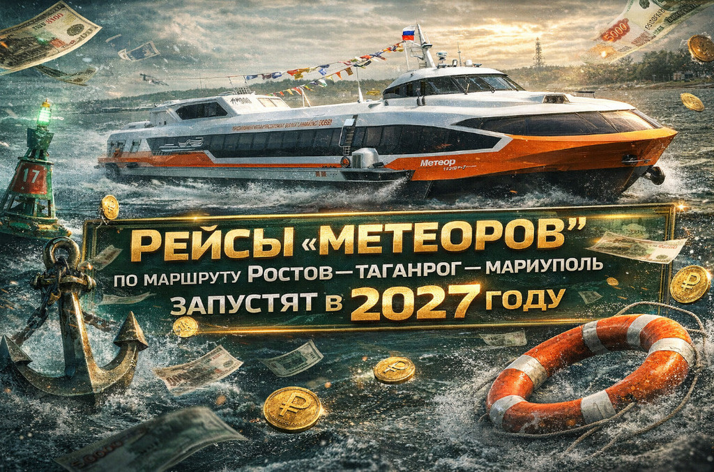 И если всё пойдёт по плану — в 2027-м из нашего порта можно будет уплыть прямо в Мариуполь. Министр транспорта Ростовской области Алёна Беликова официально подтвердила: рейсы скоростных судов по маршруту Ростов — Таганрог — Мариуполь запустят в 2027 году. Протяжённость — 230 километров. Суда — «Метеор 120Р» на подводных крыльях: 120 мест, скорость до 65 км/ч. Первая ласточка — уже в этом году. Пока морские «Метеоры» готовятся к большому плаванию, в 2026 году между Ростовом и Таганрогом уже должен начать ходить «Метеор» в речном режиме. Скромнее, но реально. Параллельно СПК «Дон» переоборудует «Метеор 120Р-7» — переводит из речного класса в класс «река-море». Завершить обещают к лету 2026-го: Таганрогский залив — это уже другая волна, другие требования. Почему именно 2027, а не раньше? Потому что история этого маршрута — учебник по оптимистичному планированию. Соглашение подписали ещё на «Транспортной неделе» в 2023-м: тогда говорили «запустим к 2026-му». Потом — «проработаем к 202