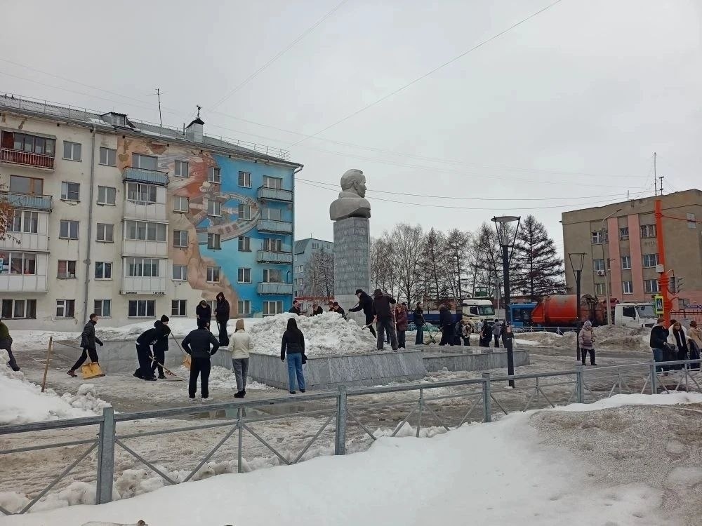 Ребята наводят порядок в сквере имени Юрия Алексеевича Гагарина, расположенном на пересечении улиц Космической и Базовой - чистят снег, убирают накопившийся за зиму мусор. Субботники проходят сегодня во всех районах города Кемерово по инициативе губернатора Кузбасса Ильи Владимировича Середюка. Фото: ТУ Заводского района