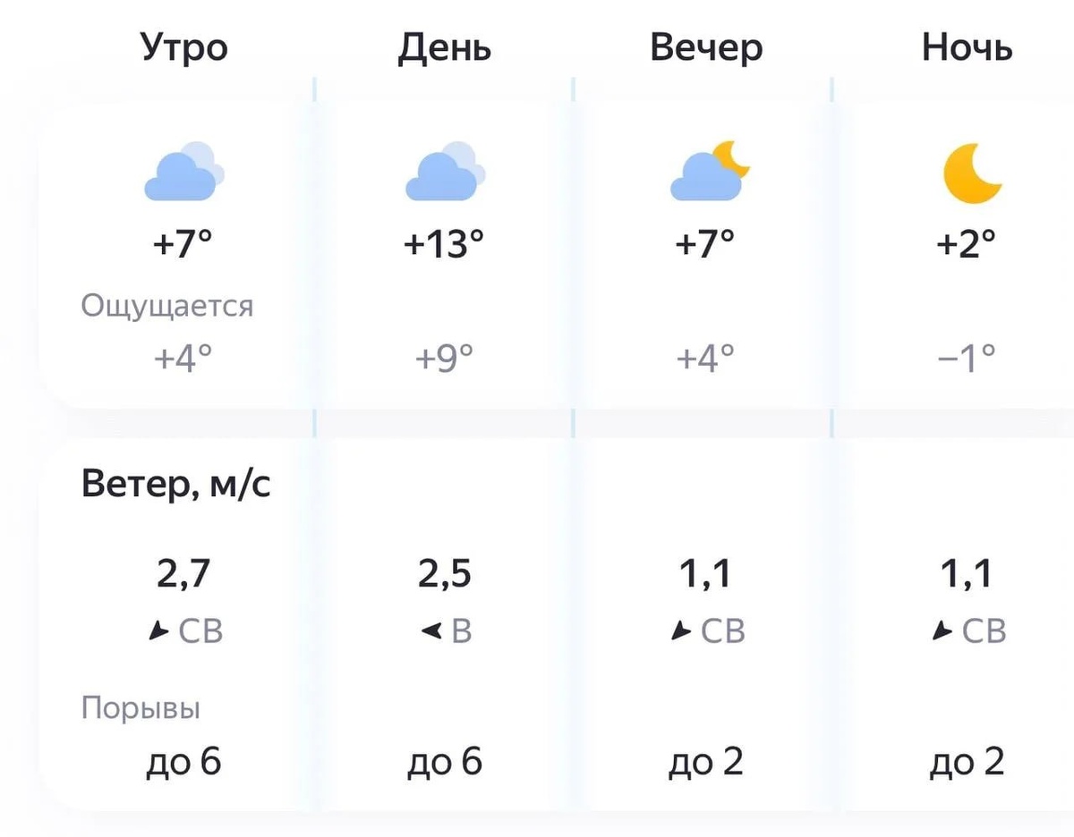 ☀️ Прогноз погоды в Пензе: солнце и без осадков! Сегодня воздух прогреется до +13°С, ветер слабый, до 6 м/с местами. Переменная облачность — дождя не ждём. 👍 — Отличная погода ❤️ — Жду лета Пока лето в пути, наслаждаемся весной! 🌸😎 📲 Подписаться на нас в МАХ