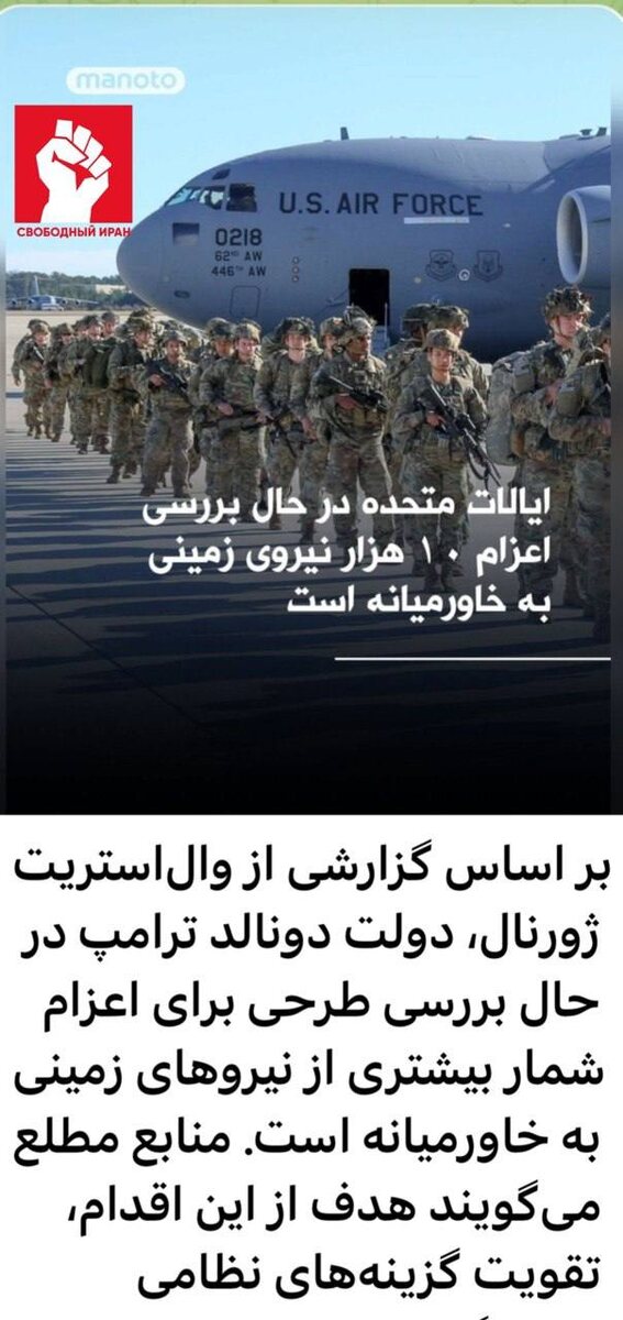 ⚡️ Через источник: The Wall Street Journal пишет, что администрация Трампа рассматривает усиление группировки — до 10 тысяч дополнительных военных, включая пехоту и бронетехнику. Где именно их могут развернуть, пока неясно. Вашингтон параллельно держит на столе и военные, и дипломатические варианты по Ирану. Подпишитесь на канал