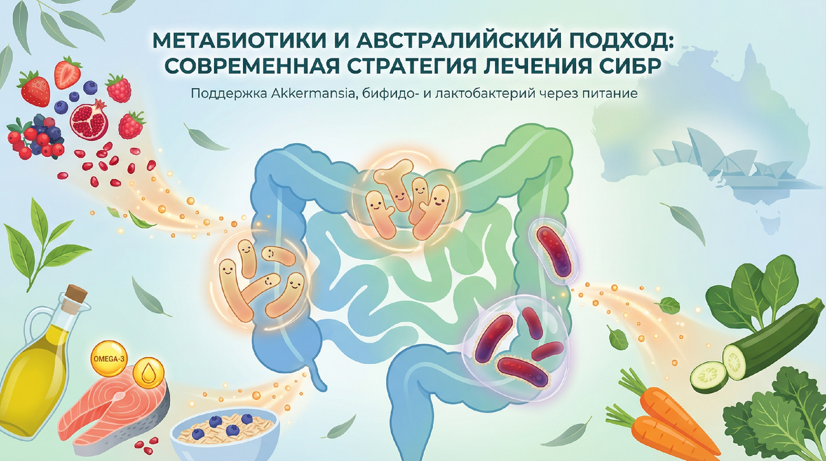 Метабиотики, не замена здоровому питанию, а эффективный инструмент, позволяющий безопасно восстановить баланс микрофлоры при СИБР. В комбинации с современным диетологическим подходом, применяемым в Австралии, они дают возможность не просто временно подавить избыточный бактериальный рост, а создать устойчивую экосистему кишечника. Ключевые элементы успеха - это поддержка ключевых бактерий (Akkermansia, бифидо-, лактобактерий) через сбалансированное питание с достаточным содержанием пребиотиков и полифенолов, а также стремление избежать длительных необоснованных диетических ограничений.