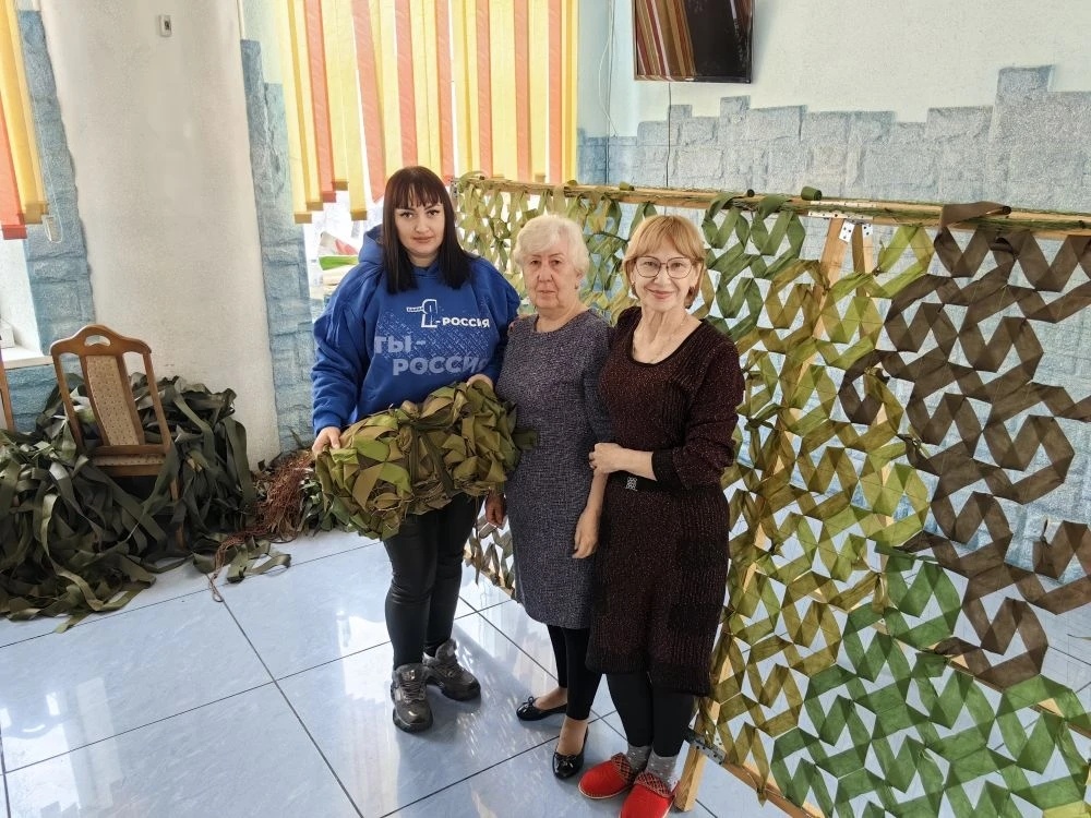 – Это и на самом деле так. Мы ещё только делали первые шаги в освоении такого нужного для армии дела, когда от наших участников СВО получили сообщение, которое никогда не забуду: «Мы стоим как три тополя на Плющихе, нас видно со всех сторон. Выручайте, девчата». Это было в феврале 2023 года. Дроны стали постепенно контролировать воздушное пространство. Мы закупили и отправили партию маскировочных сетей. Они, увы, оказались плохого качества. Я, как опытный волонтёр и один из организаторов волонтёрского движения в Городе юности, приняла решение попытаться изготавливать их самим. Как сейчас помню, 1 апреля 2023 года мы нашли помещение и приступили к его оборудованию и оснащению. Ровно через месяц наш первый пункт движения открылся, и мы начали плести маскировочные сети. Приходили горожане разных возрастов, от инициативных бабушек до школьников. Сейчас у нас большой штат помощников.