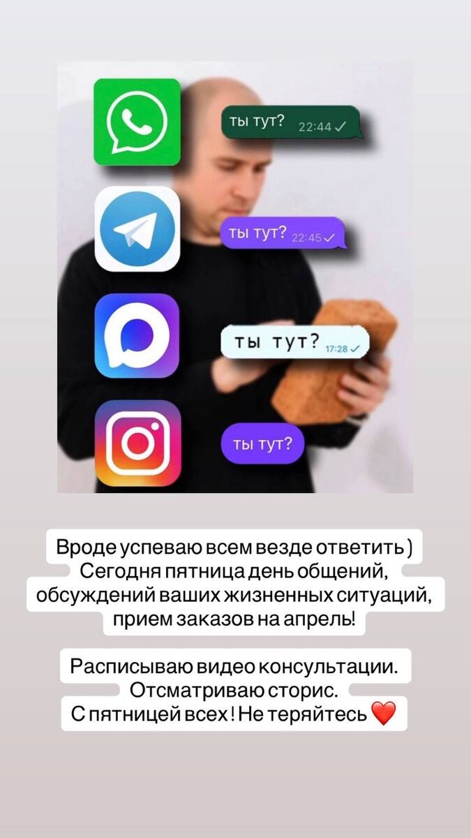 ?) У меня еще добавились просто звонки по телефону. На моем тарифе до конца месяца еще 1750 минут 🤩 Сегодня у нас еще два групповых созвона в Сообществе «Движение - это Мы» с Дальним Востоком и теми кто живет по Московскому времени. С пятницей всех!