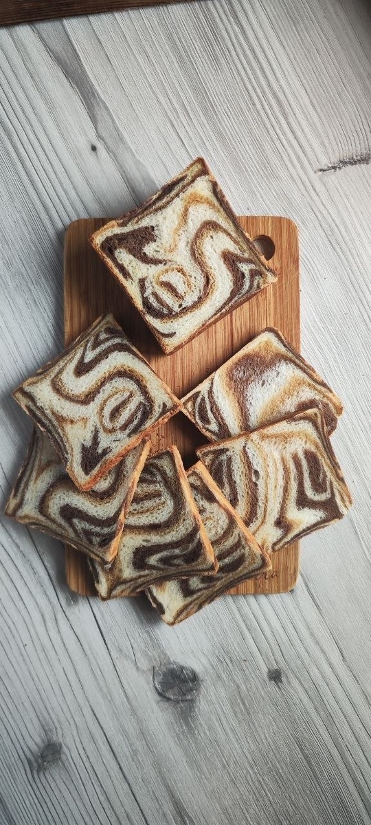 ! Предваряя вопрос про "рецептик", - в основе рецепт хлеба "самый нежный формовой". Тесто делится на 3 части: белая, с кофе и с какао. И далее тесто несколько раз нужно ламинировать в разных направлениях. Главное в этом хлебе не "рецептик", а понимание, что именно вы хотите получить😉 Всем душевной пятницы!