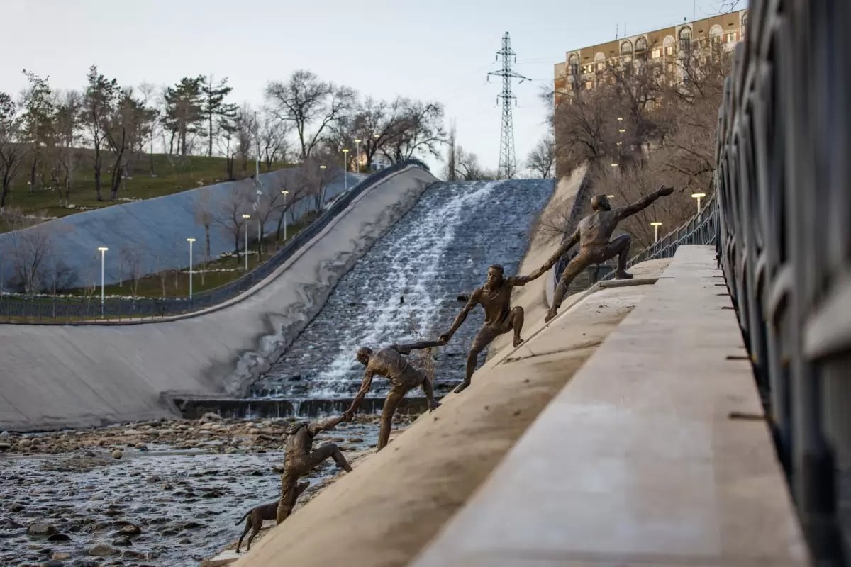 В Алматы появился необычный арт-объект, посвященный событию, случившемуся летом 2016 года. Тогда в водохранилище Сайран упала собака. Выбраться самостоятельно она не могла из-за высокой дамбы, но на помощь пришли обычные прохожие. Не знакомые друг с другом люди выстроились в живую цепь, взялись за руки и вытащили собаку. Любой желающий может стать участником: взять за руку крайнюю фигуру и стать частью этой цепочки добра. фото: ulysmedia.kz #НовостиХвостНьюс