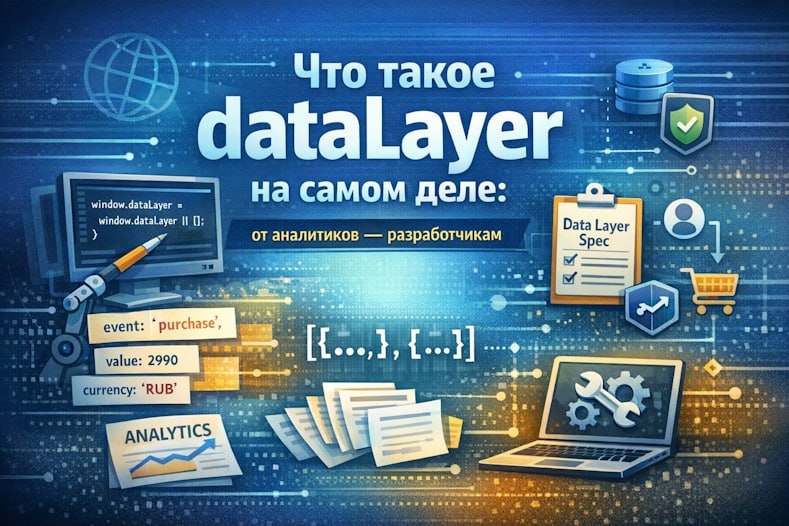 Если спросить разработчика, что такое dataLayer, чаще всего ответ будет примерно такой: «Ну это что-то из GTM». А если спросить аналитика, что нужно для настройки событий, ответ будет: «Нужно просто пушнуть это в dataLayer». Здесь начинается мистика и легкое раздражение с обеих сторон. Разработчику кажется, что это часть Google Tag Manager, которую он не обязан понимать. Аналитику кажется, что это очевидная вещь уровня «объявить переменную». В итоге dataLayer превращается в некий черный ящик, за который отвечает «кто-то другой». Спойлер: никто. Так что же такое dataLayer на самом деле? Подробнее читайте: ХАБР VAITI.IO #datalayer #gtm #ЯТМ #matomotagmanager #js