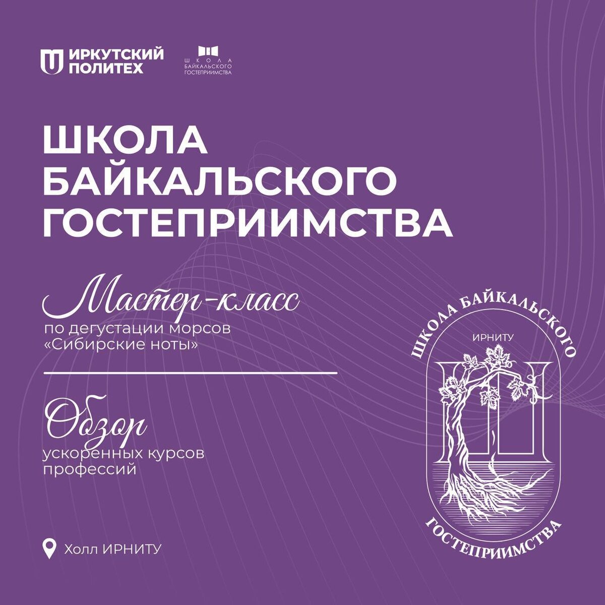 ⭐️ В рамках Дня открытых дверей ИРНИТУ Школа Байкальского гостеприимства подготовила специальную интерактивную программу. Мы приглашаем вас погрузиться в атмосферу гостеприимства и узнать, как построить успешную карьеру в сфере сервиса и туризма. В программе мероприятия: ➖ Гастрономическая зона «Вкус Прибайкалья» Для гостей будет организована дегустация натуральных морсов, приготовленных из местных ягод: брусники, смородины, малины, черники, вишни и других даров сибирской природы. ➖ Презентация ускоренных программ профессионального обучения Специалисты школы расскажут о возможностях быстрого старта в профессии. Вы узнаете о тонкостях освоения востребованных специальностей: · Сомелье (искусство подбора напитков); · Повар (кулинарное мастерство); · Менеджер (организация и управление в индустрии гостеприимства). Приходите, чтобы сделать первый шаг к востребованной профессии в одной из самых динамично развивающихся сфер!