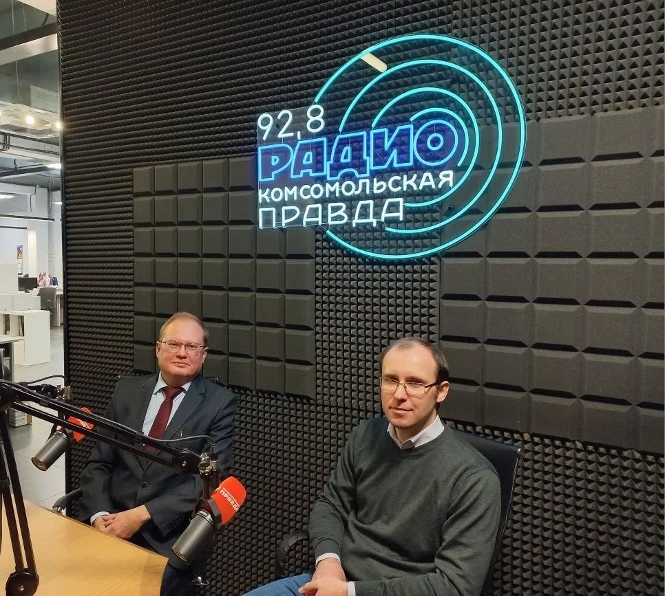 У микрофона - ученые, сотрудники Института химии высокочистых веществ им. Григория Девятых РАН Олег Трошин и Максим Суханов.