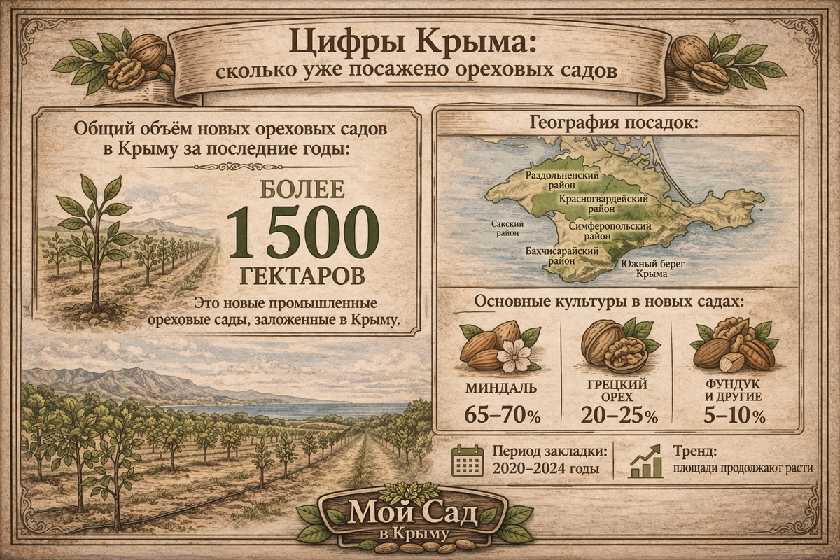 Крым сделал первый крупный шаг: превратил идею «орехового полуострова» в конкретные тысячи гектаров садов. Следующий шаг — превратить эти гектары в устойчивую и прибыльную промышленную отрасль. И цифры уже показывают: базис для этого создан.