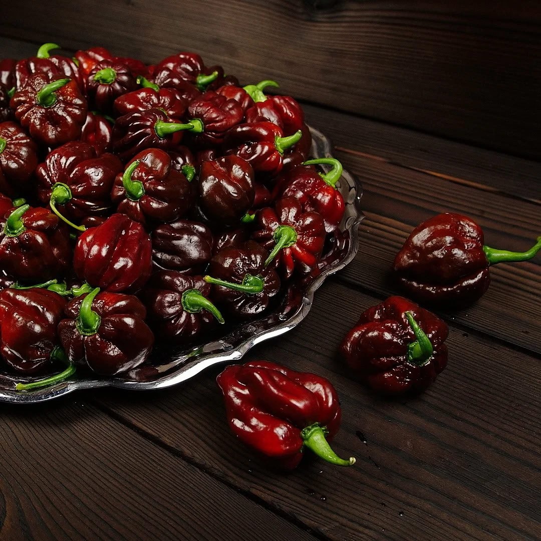 Относится к представителям Capsicum chinense. Урожайный сорт, с крупными, красивыми плодами тёмно-шоколадного цвета. Форма плодов кубовидно-ребристая. Стенка плодов толстая, кожица слегка бугристая. Аромат насыщенный, хабанерный. Кусты могут достигать высоты 1,5 метра и выше. В зависимости от условий произрастания острота плодов может достигать 300.000 единиц по Шкале Сковилла. Срок созревания 120-150 дней. Перец представлен в Жгучий Жгуч ✦ #рассада_перца #семена_перца #сорта_перца #описание_перца #острый_перец ☺️ Мы в Дзен 😄 Мы в Вконтакте 😌 Наш чат в Тг Peppers