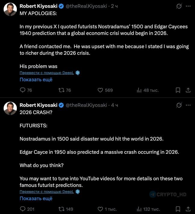 » Нострадамус ещё в 1500 году говорил о большом бедствии в 2026-м. Эдгар Кейси тоже предсказывал масштабный крах в 2026 году. Мой главный вопрос простой: если это произойдёт, вы станете богаче или беднее? Я лично планирую стать богаче. Мой план не меняется годами. Я покупаю и держу активы, которые ФРС, правительство США и банки не могут напечатать. Свои первые 6 BTC я купил за $600 – это были все мои деньги, и после этого я несколько дней не ел. Для этого не нужен был большой интеллект — нужна была дисциплина, упёртость и поддержка близких людей. Я люблю нефть, недвижимость, гольф, серебро, Bitcoin, Ethereum и производство еды. Мне нравится реальное. Фальшивое я не люблю. Я не инвестирую в S&P 500, облигации США, взаимные фонды, ETF и не держу ставку на наличные деньги. Я не вкладываюсь ни во что, что могут напечатать государство, банки или Уолл-стрит. Мой принцип — KISS: Keep it Super Simple. Я люблю простую стратегию и реальные активы, а не сложные схемы и бумажные обещания.