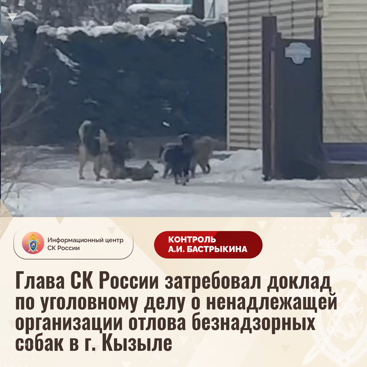 Глава СК России затребовал доклад по уголовному делу о ненадлежащей организации отлова безнадзорных собак в г. Кызыле В социальной сети сообщается о бездействии профильных структур при организации отлова безнадзорных собак в городе Кызыле. На протяжении длительного времени вблизи жилых домов и образовательных учреждений обитает большое количество животных, которые систематически нападают на местных жителей. Несмотря на имеющиеся нарушения, мер к разрешению проблемы не принимается. В СУ СК России по Республике Тыве возбуждено уголовное дело. Председатель Следственного комитета Российской Федерации Александр Иванович Бастрыкин затребовал у руководителя СУ СК России по Республике Тыве Константина Владимировича Столбина доклад о предварительных и окончательных результатах расследования уголовного дела. Исполнение поручения поставлено на контроль в центральном аппарате ведомства. #СледственныйКомитет #СКРоссии #СКР #ИЦСКР #ИнформационныйЦентр #АлександрБастрыкин #ПредседательСКР #КонтрольП