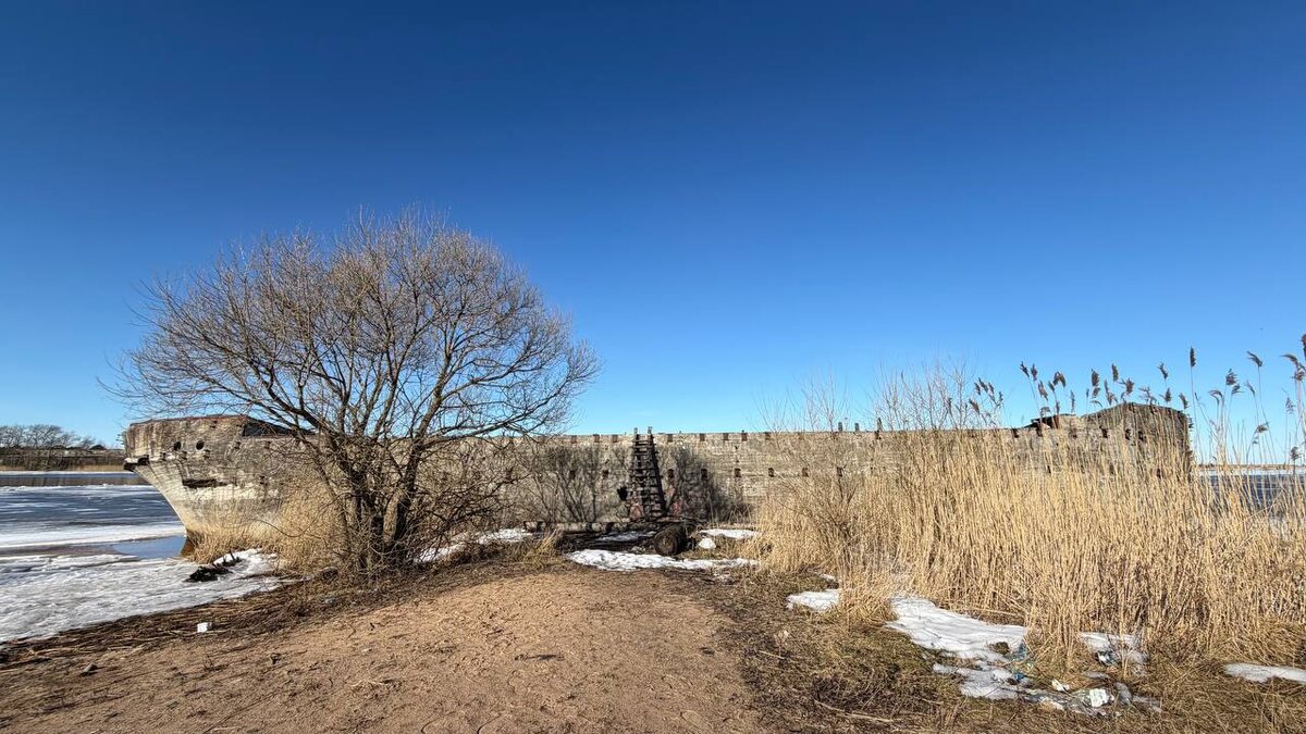 Среди камышей и тихой воды прячется необычный артефакт – остатки немецкого лихтера. Это не просто старая баржа, а настоящий бетонный бункер. Несамоходная, однотрюмная, безэкипажная – такие использовали для перевозки грузов. Конструкция родом из Германии. По одной из версий ее бросили немцы при отступлении, по другой – эта трофейная немка попала сюда после войны как репарация. А в 50–60-х она уже трудилась передвижным рыбозаводом ПРЗ-38. Сейчас тихо доживает свой век на вечной стоянке в Ленобласти. Ржавчина бетон не берёт, так и стоит, вросла в берег, а вокруг только вода и крики чаек. Координаты бетонной баржи: 59.670263, 28.301705.