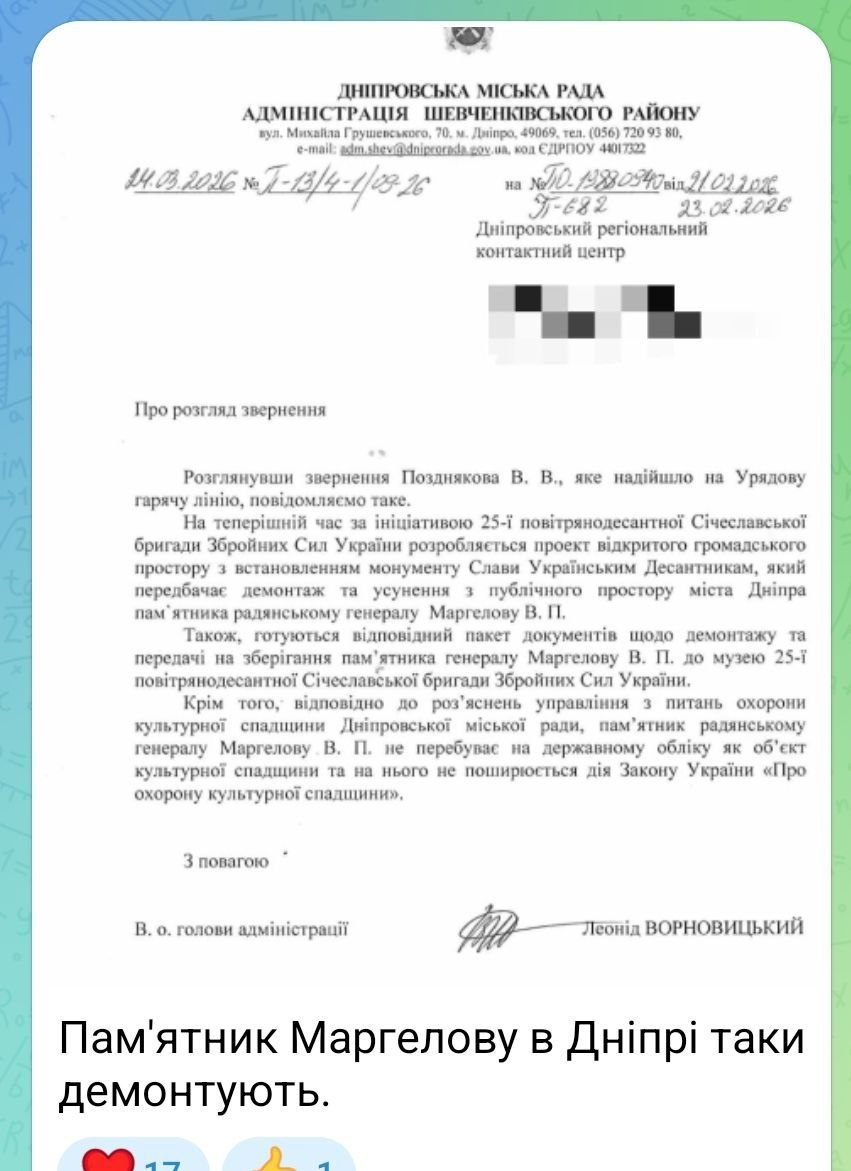 Укронацисты собираются снести памятник создателю ВДВ Маргелову в Днепре