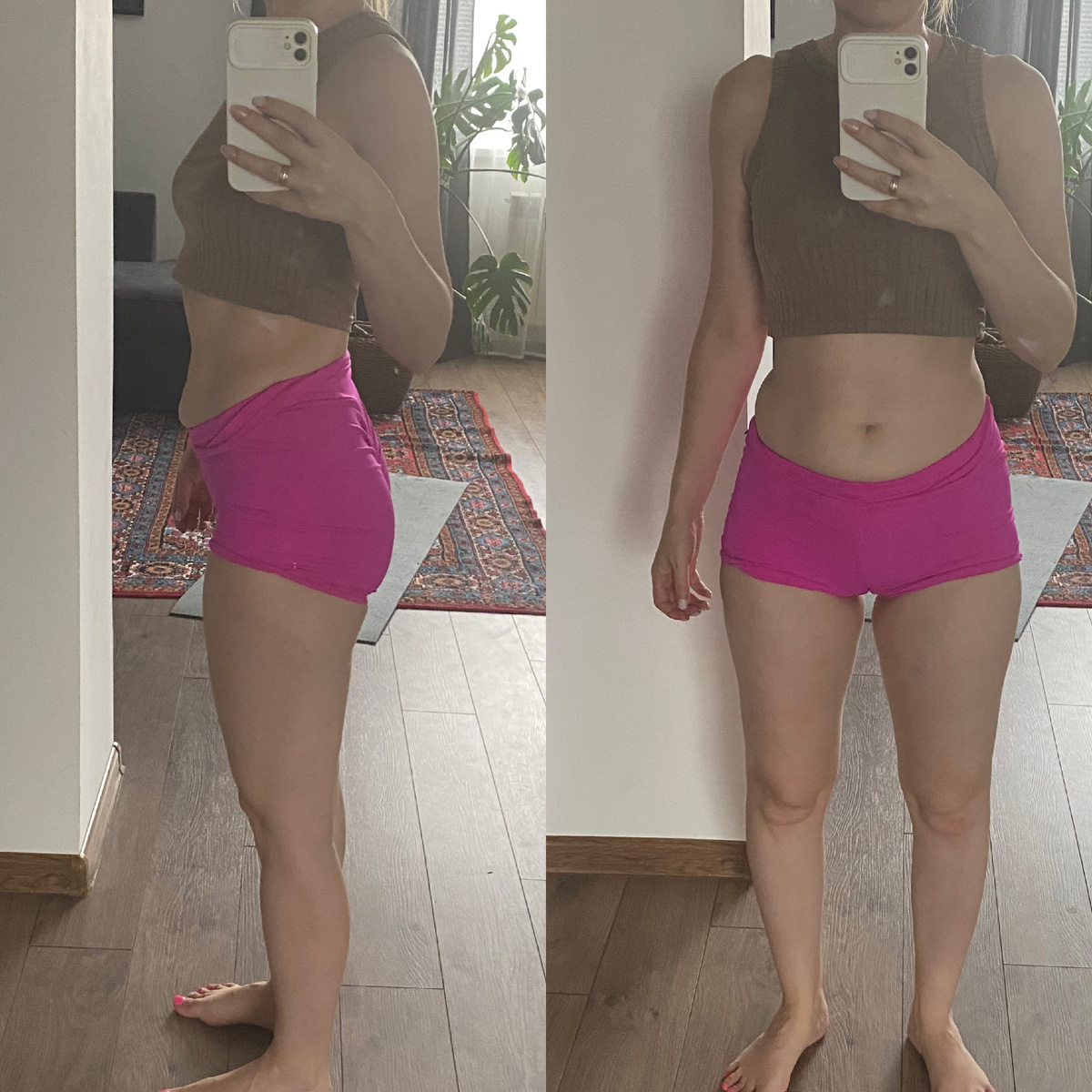 Привет, друзья! Часто сталкиваюсь с таким вопросом, зачем вообще мне худеть. Удивляются моим попыткам коллеги на работе, друзья и знакомые. Они дружно утверждают, что у меня чуть ли не идеальная фигура. Напомню, мне 41 год, рост 162 см, вес 57 кг. Нет, ну в одежде может быть я выгляжу стройной. Но если присмотреться внимательнее, то очевидно, что я счастливый обладатель фигуры скинни фэт. У меня много жира в теле для моего роста (аж 17 кг, если верить биоимпедансу), и очень мало мышц. Последнему факту я не хочу верить, ведь я занимаюсь силовыми тренировками с 2018 года. Но мышцы особо не растут. Этому есть объяснение, но о нем чуть позже. По фото видно, что ягодицы у меня плоские, а живот наоборот выпирает. Может отчасти виновата осанка, имеется гиперлордоз, который с возрастом только усилился. А хотелось бы наоборот, объемные ягодицы и плоский живот с низким процентом жира 16-18% вместо 30%. Мышцы не выросли, по моему мнению, по причине того, что я боюсь питаться в профицит, ведь ж