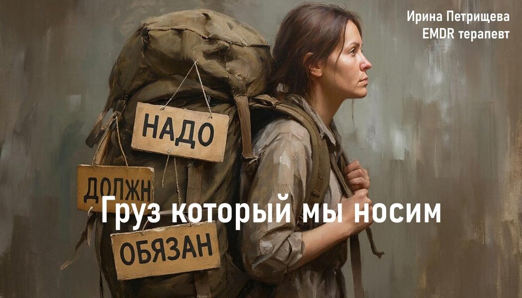 Представьте, что с детства вам на плечи повесили рюкзак. Сначала он был маленьким: «надо слушаться», «надо хорошо учиться», «надо не расстраивать маму».