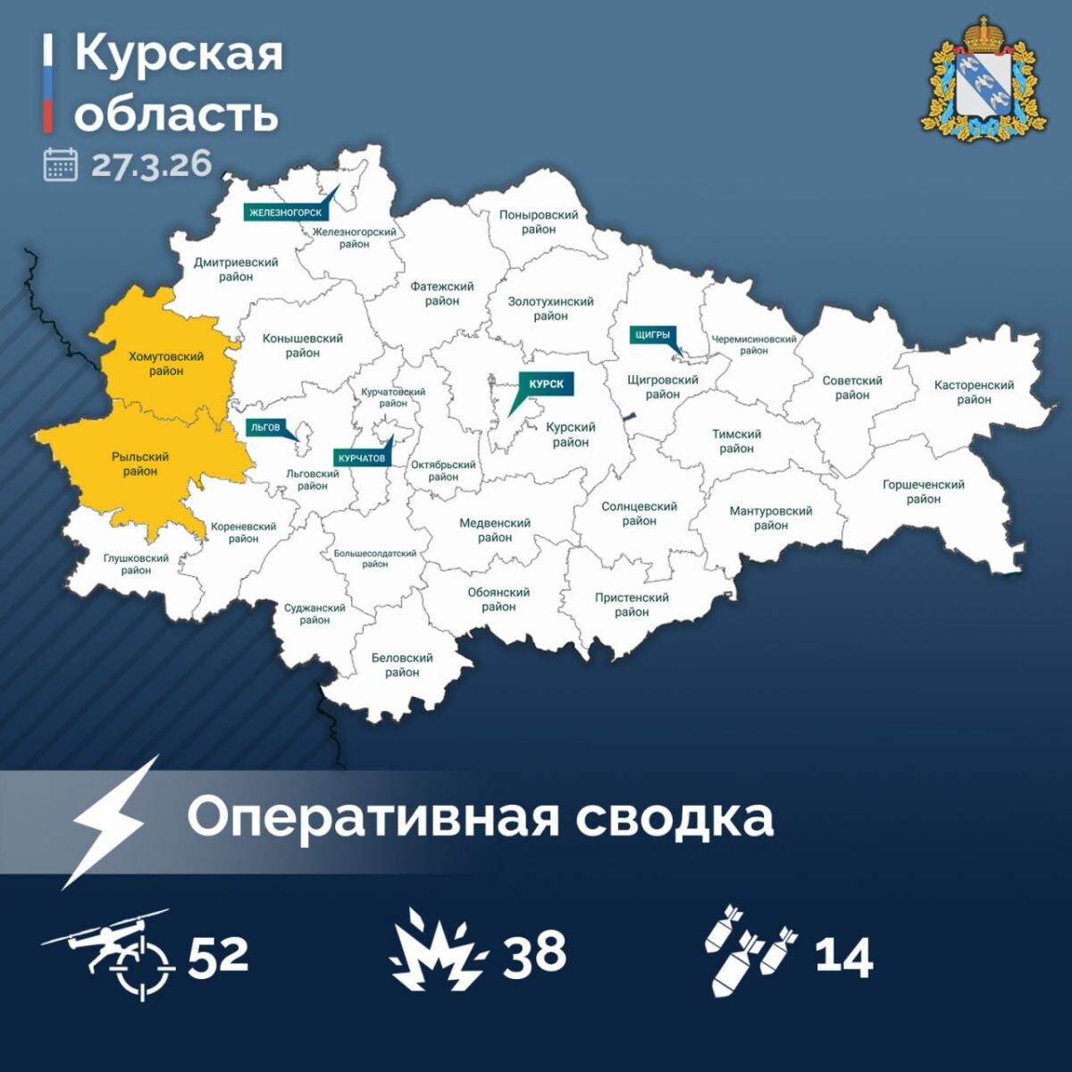 В Курской области за сутки уничтожены 52 беспилотника, пострадали здания в двух районах