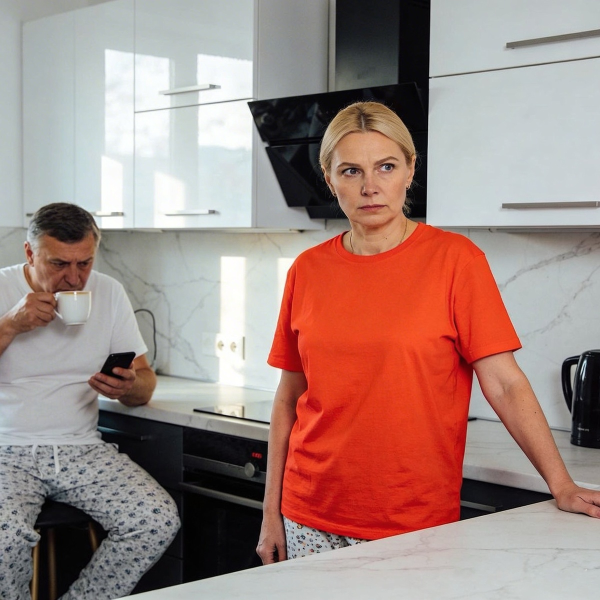 Валера сидел на кухне с кружкой чая и листал что-то в телефоне. Он поднял голову, когда она вошла, и улыбнулся — привычно, по-домашнему. И эта улыбка отчего-то разозлила её сильнее всего остального.