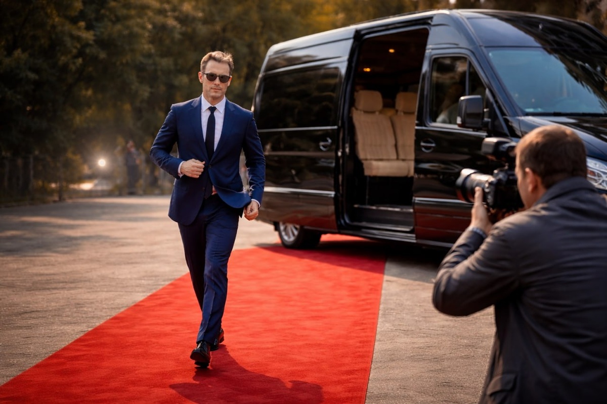 После комментария он сел в микроавтобус "Мерседес" и был таков.